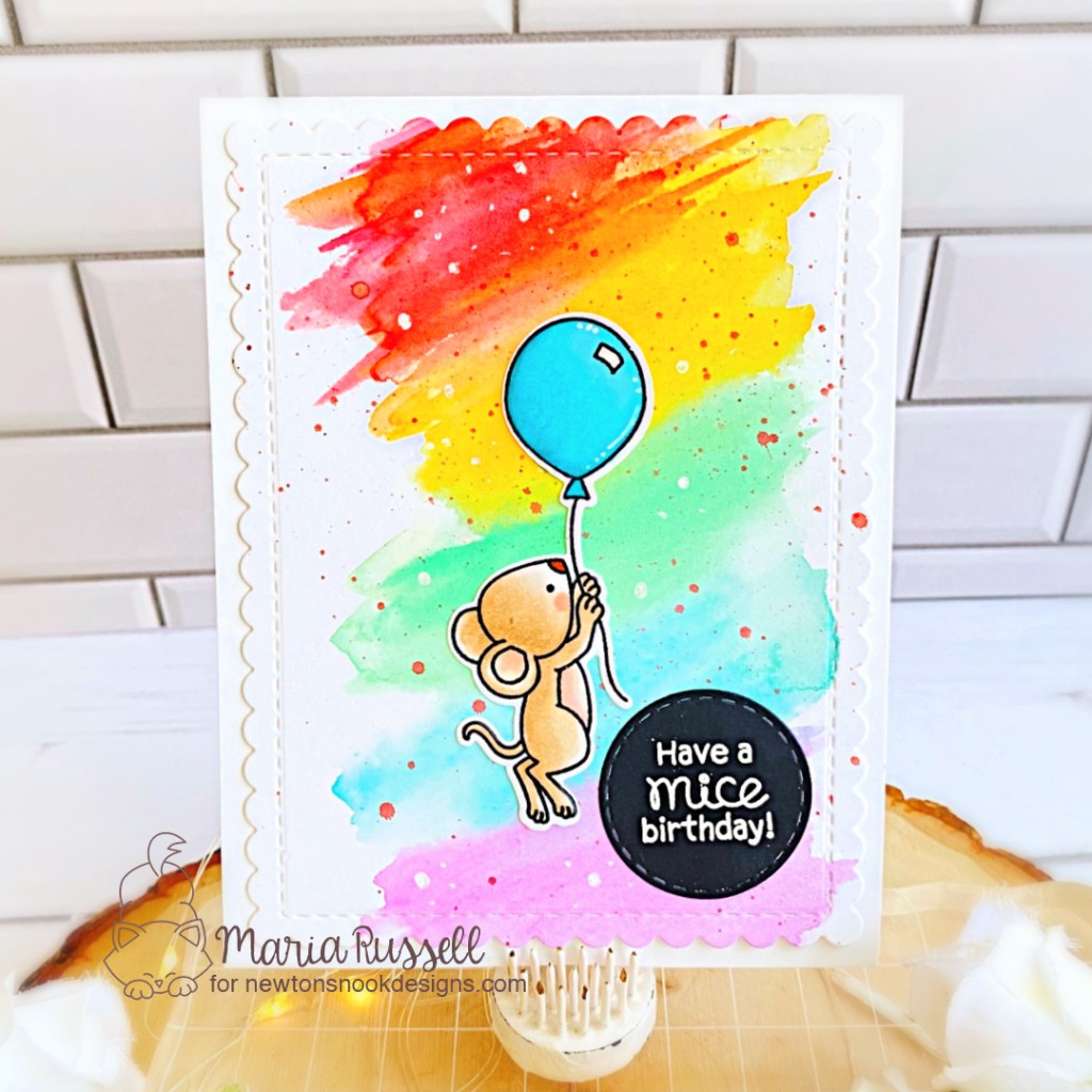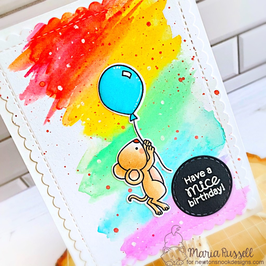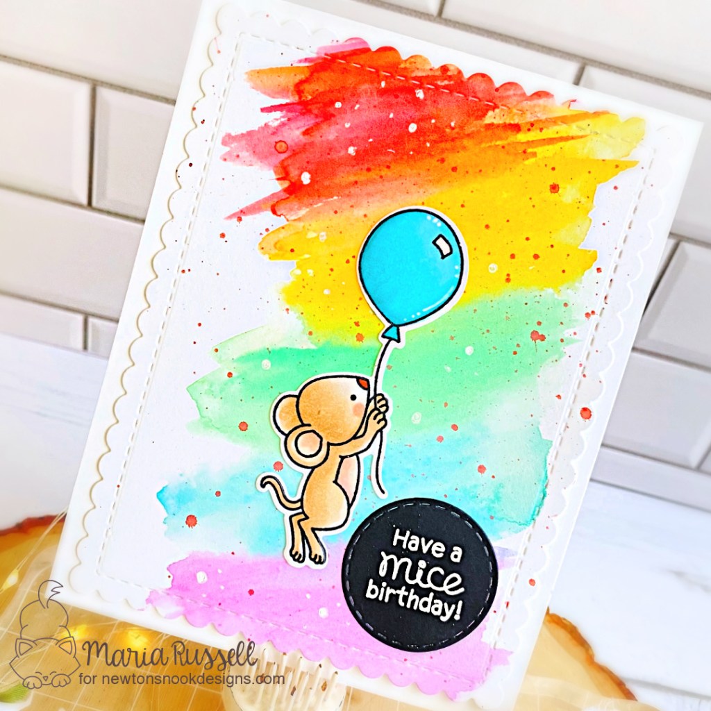 I used my paintbrush and some water with the Prima Mixed Media Pastel Dreams Watercolor Confections to add splatters for more texture. I finished the card design by adding the sentiment that was heat-set and die-cut using the Frames & Flags Die Set.