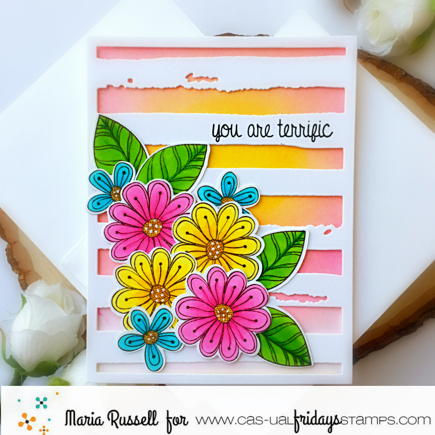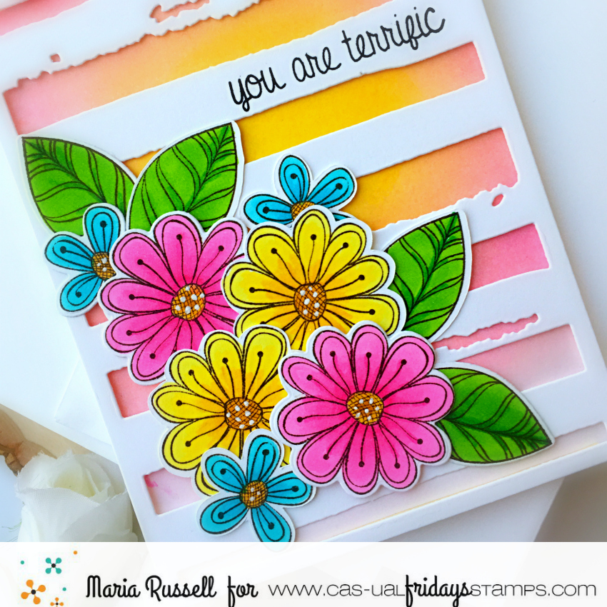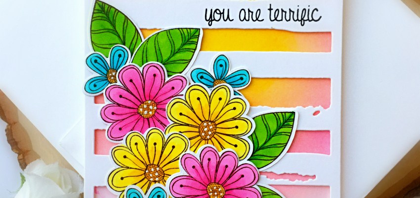 For my next card, I stamped the images on some A2-size Neenah solar white card stock. I colored the images in with alcohol markers.