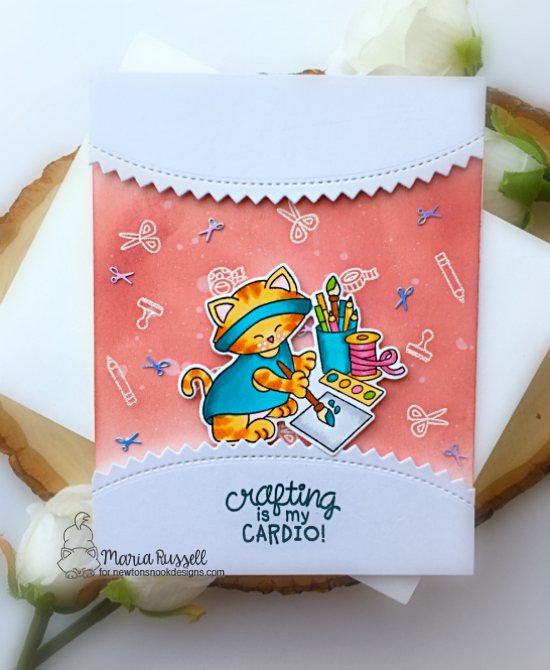 For my first card, I stamped the images twice on some Neenah solar white card stock and colored the images in with my Spectrum Noir TriBlend markers. I die-cut the images with the coordinating dies.