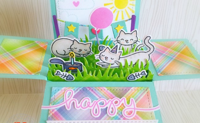 For my projects today, I am showcasing the Newton’s Birthday Trio stamp set and coordinating dies, Garden Mice stamp set and coordinating dies, Balloons Stencil and the Grass Border die with the Cats Border Embossing Folder and the Leafy Tree Trunk Embossing folder.