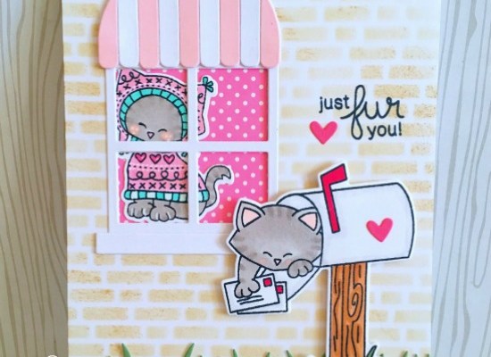 I started out by stamping my image on Neenah solar white card stock. This is my favorite card stock as you can already tell for Copic coloring. I also used a previously released stamp set called “Sweater Weather” to create my scene. Newton is collecting the happy mail while his wife watches him from the window. Aren’t they adorable?  I hope you love my card as much as I do.
