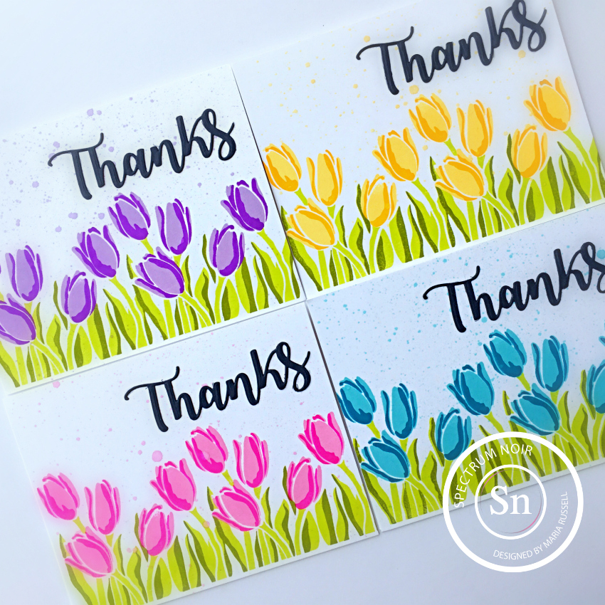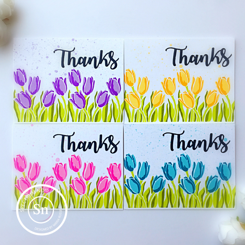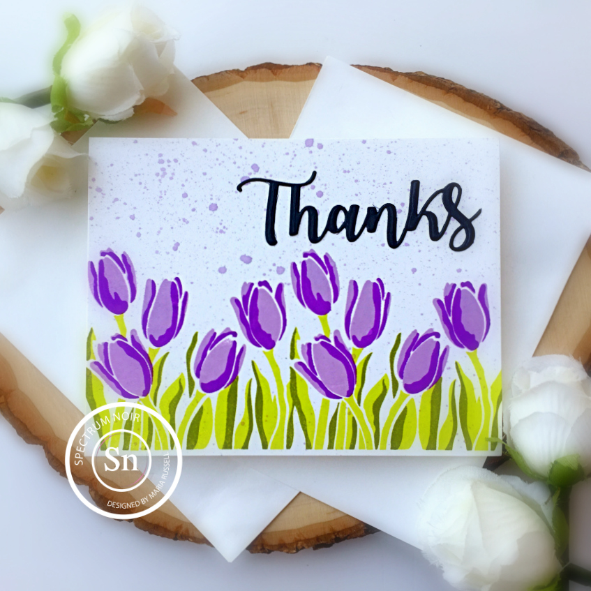 I hope everyone’s doing well! I don’t know about you but lately, I have been needing to give out “thank you” cards a lot more often. I wanted to create some cards today that I can mass-produce that’ll look amazing but wouldn’t take a lot of effort. Layering stamps are great for this type of project because you don’t have to color the images one by one. Spectrum Noir quick dry dye inks are my go-to when it comes to stamping layering images. The ink pads are so juicy, and the colors are so vibrant that it’s perfect to use for the stamp set that I am showcasing today.
