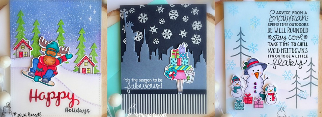 For the first day of the reveals, we are showcasing the Christmas Haul and Moose Mountain with their coordinating dies, with the Snowman Advice stamp set and two new layering stencils called Plaid stencil set and Argyle stencil set. Heres what they look like:
