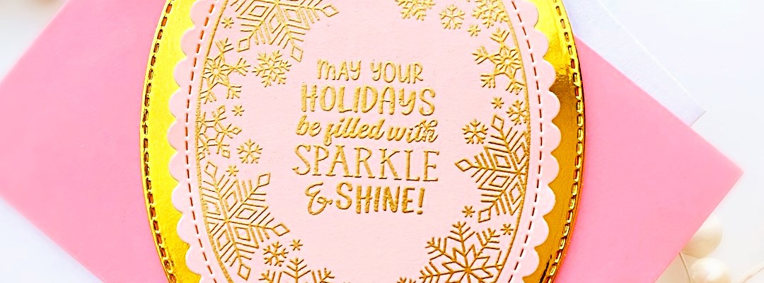 Next, I die-cut the focal panel using the Oval Frames Die Set and foam-mounted on a gold oval frames notecard for added dimension. This card is really simple but I love how it turned out.