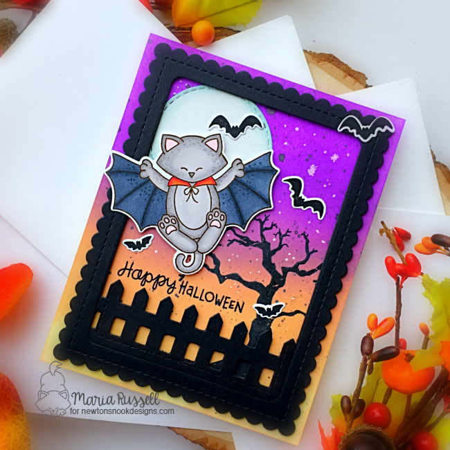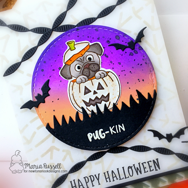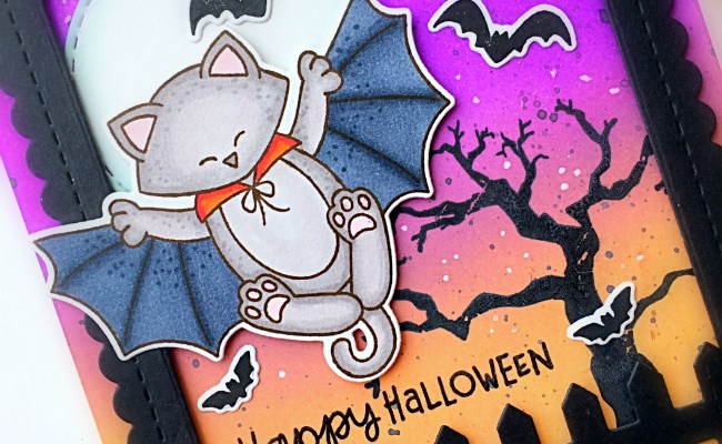 The bats and “TRICK OR TREAT” were die-cut using the dies from the Halloween Trio die set. I adhered them onto the card with some liquid glue.