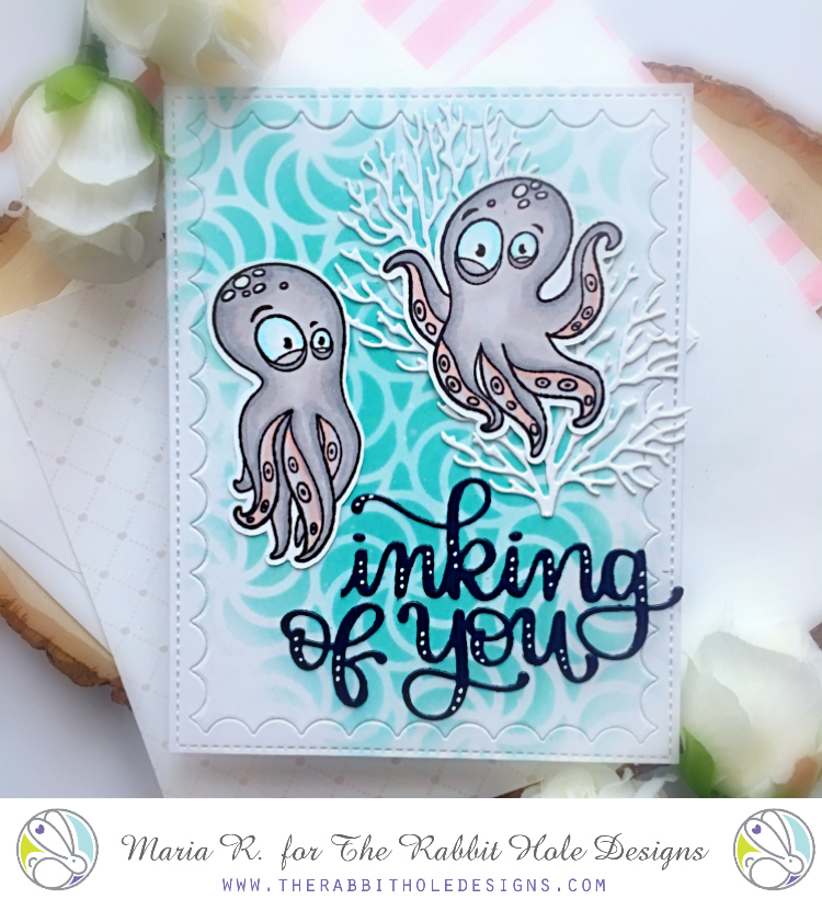 Hello and welcome to the release hop. We are so excited for you to join us as we present to you our August release. The whole design team will be sharing projects featuring the new Stencils. For my project today, I also used the Caffeinated Rabbit and the Sassy Sentiment stamp set. We also have a GIVEAWAY so please be sure to scroll at the end of this blog post to find out how you can WIN. Don’t forget to visit the participating blogs (links are indicated below) and leave us some crafty love. The new stamp sets and stencils are now available for purchase at the Rabbit Hole Designs as well as Simon Says Stamp. Here’s what it looks like: