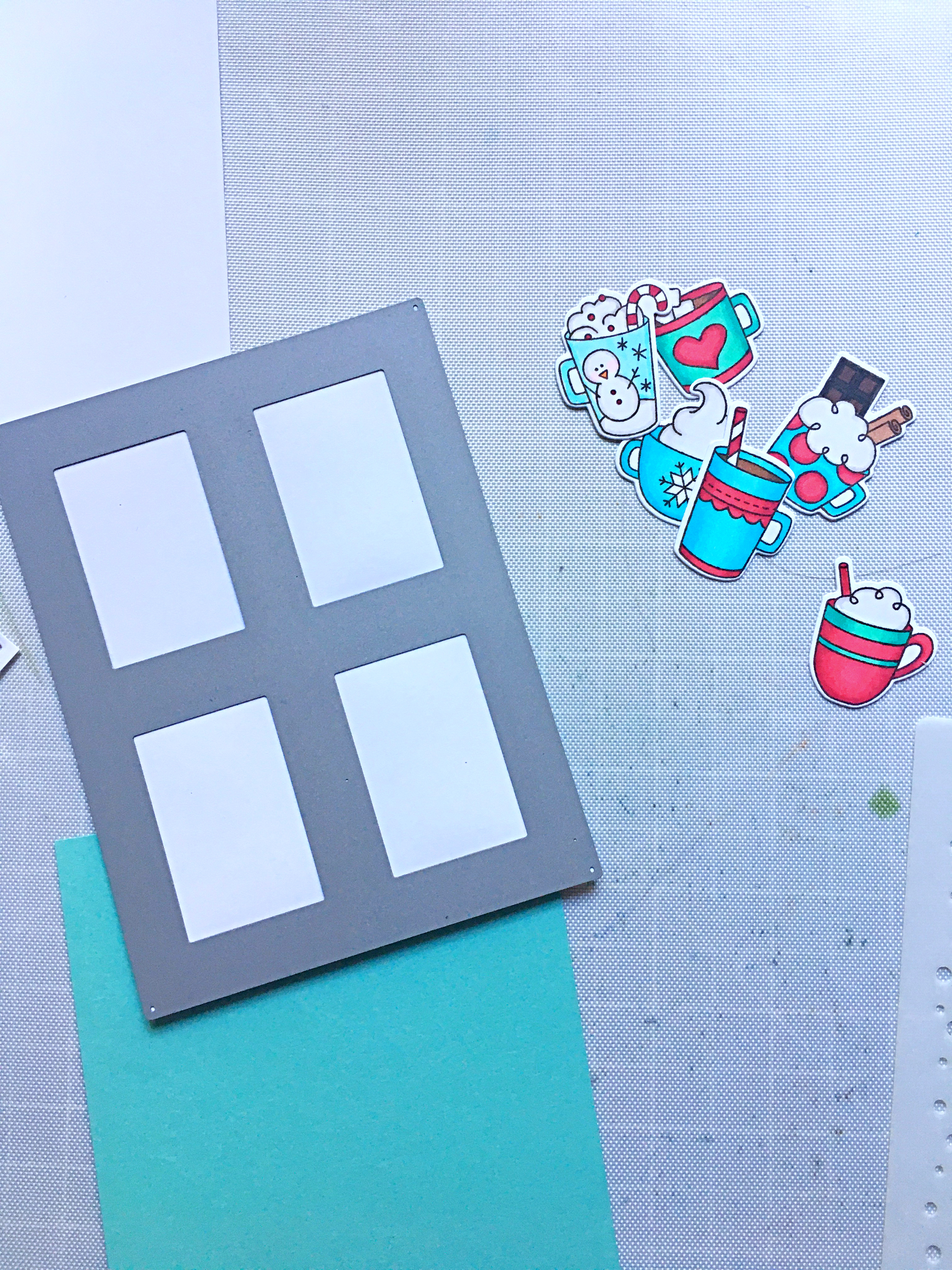 - adhere the the rest of the die-cuts onto the card with liquid glue.