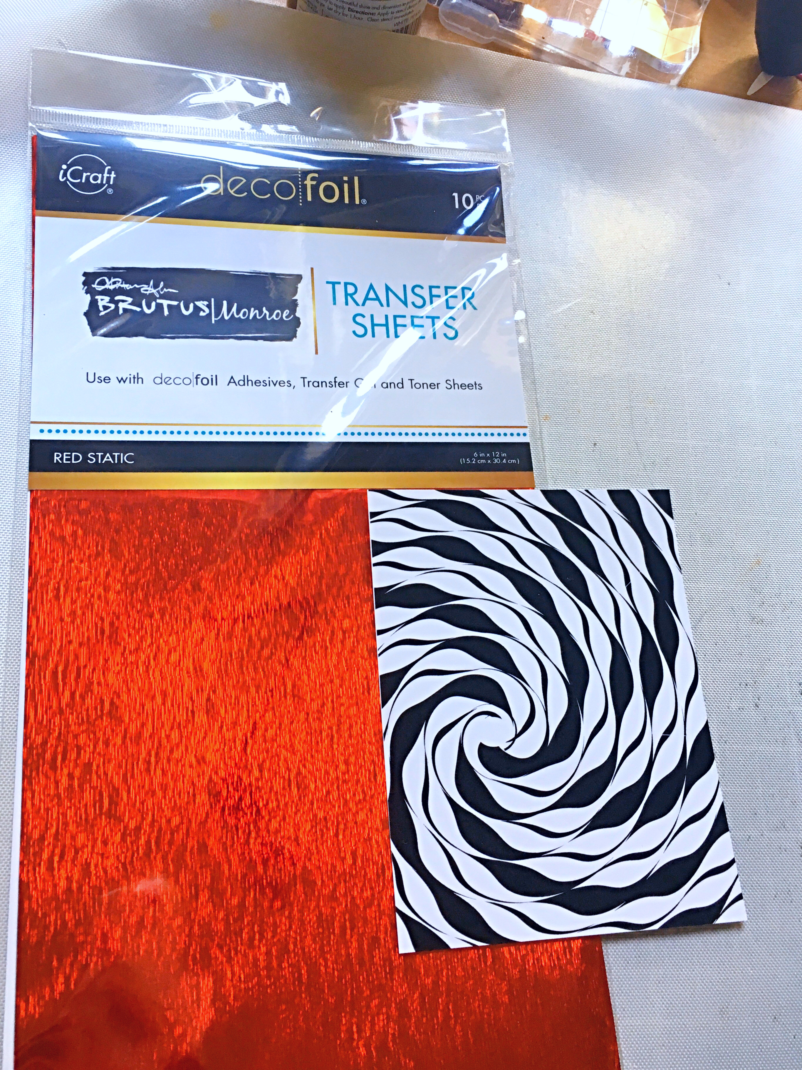 - use Therm-O-Web’s DecoFoil A2 Toner Card Fronts Rainbows Galore and the DecoFoil Transfer Sheets Mystic Rainbow and run it through the laminator to foil both backgrounds.