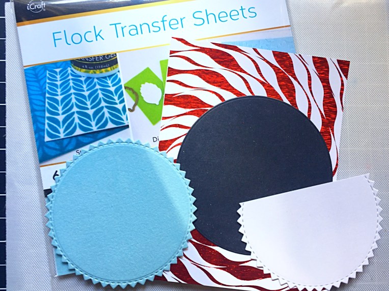 Since I have two negative foil pieces from the cards above, I did not want to waste them so I used the iCraft Easy-Cut Adhesive Sheets and added them to some A2-size Neenah Classic Crest Solar White Card Stock. I die-cut both backgrounds using the scallop die from the Frames and Flags Die Set and adhered the same on some black A2-size notecards.
